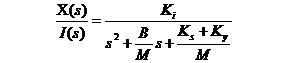 整理方程式(5-3)和式(5-4)可得二階系統(tǒng)位移與電流的傳遞函數(shù)為