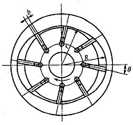 滿足分隔工作容積密封條件的最小葉片數(shù)(應取偶數(shù))Zmin=6,從轉(zhuǎn)子強度考慮,葉片數(shù)以少為好,但為了減小流量脈動等,Z值尚須與定子滑道曲面中過渡段的形狀相匹配,一般取2=8~18,并以Z=10和12者為多。為了降低流量脈動,單作用泵的葉片數(shù)則應為奇數(shù)(常取Z=9~21)。