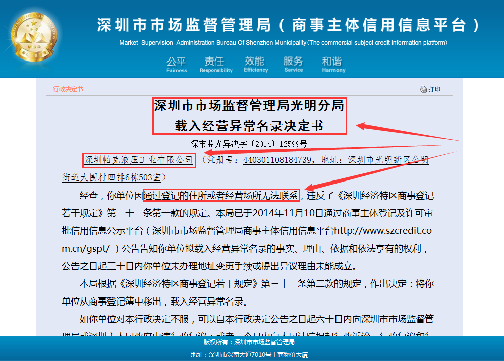 異常公司查詢結(jié)果