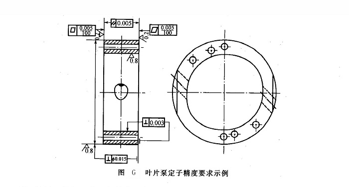 (1)定子 加工的一般技術(shù)要求是:端面平行度公差為0.005mm;內(nèi)柱面與端面的垂直度公差為0.003mm;內(nèi)孔表面粗糙度為0.4~0.1μm。