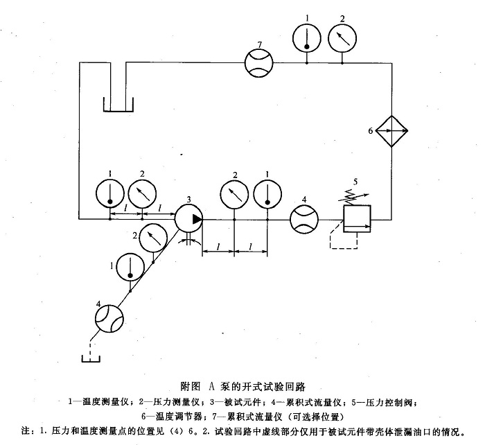 c. 如果測試的是雙向泵,應對附圖A和附圖B所示的試驗回路作適當修改,因為附圖A和附圖B所示的試驗回路僅適用于單向泵的試驗。