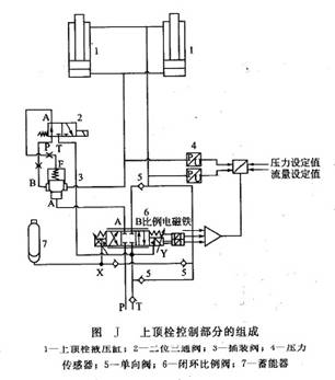 在油溫調(diào)節(jié)和過濾方面,該泵站采用冷卻器和過濾器相串聯(lián)的方式,并以一個小泵作動力源,構(gòu)成一個獨立于主液壓系統(tǒng)的回路,以便不間斷地清除液壓油中的雜質(zhì),以滿足上頂栓控制部分中閉環(huán)比例閥對液壓油的要求,同時也使冷卻器不受液壓沖擊的影響。